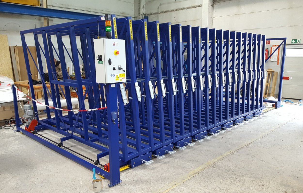 De RJTM en RBM gemotoriseerde rekken van Hakon zijn ontwikkeld voor de efficiënte en veilige opslag van grote platen glas of steen. Dankzij hun compacte ontwerp en aangedreven frames bieden ze directe toegang tot elk paneel zonder manueel tillen of schuiven.