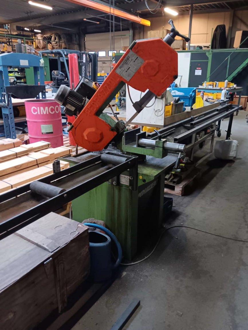 De zaagtafel heeft een afmeting van ca. 25 × 25 cm en het toestel heeft een totale afmeting van ca. 180 × 110 × 105 cm (h × b × d). Een betrouwbare machine voor werkplaatsen die op zoek zijn naar een robuuste en bewezen oplossing.