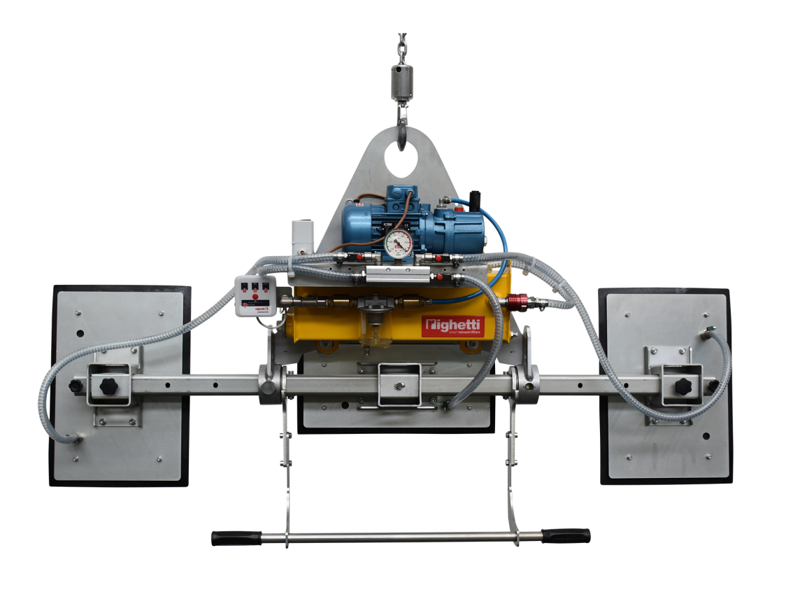 Het M3EB heftoestel is een elektrische uitvoering met drie zuigers en een hefvermogen tot 2000 kg. De geïntegreerde elektrische pomp zorgt voor een stabiel vacuümniveau, ideaal voor continu gebruik in industriële omgevingen.